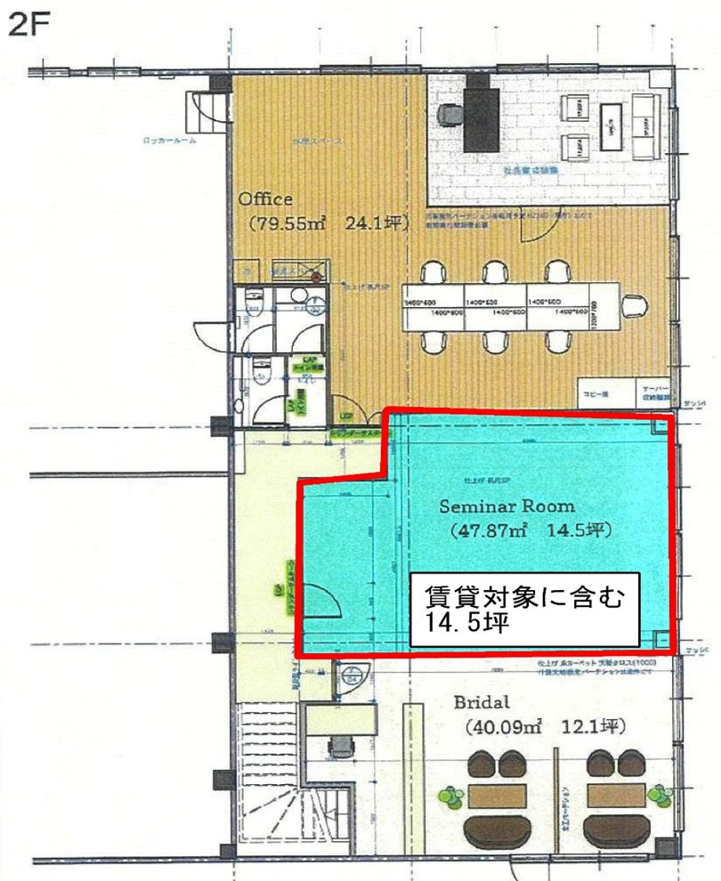 事務所部分:約47.94㎡(約14.5坪)2階部分